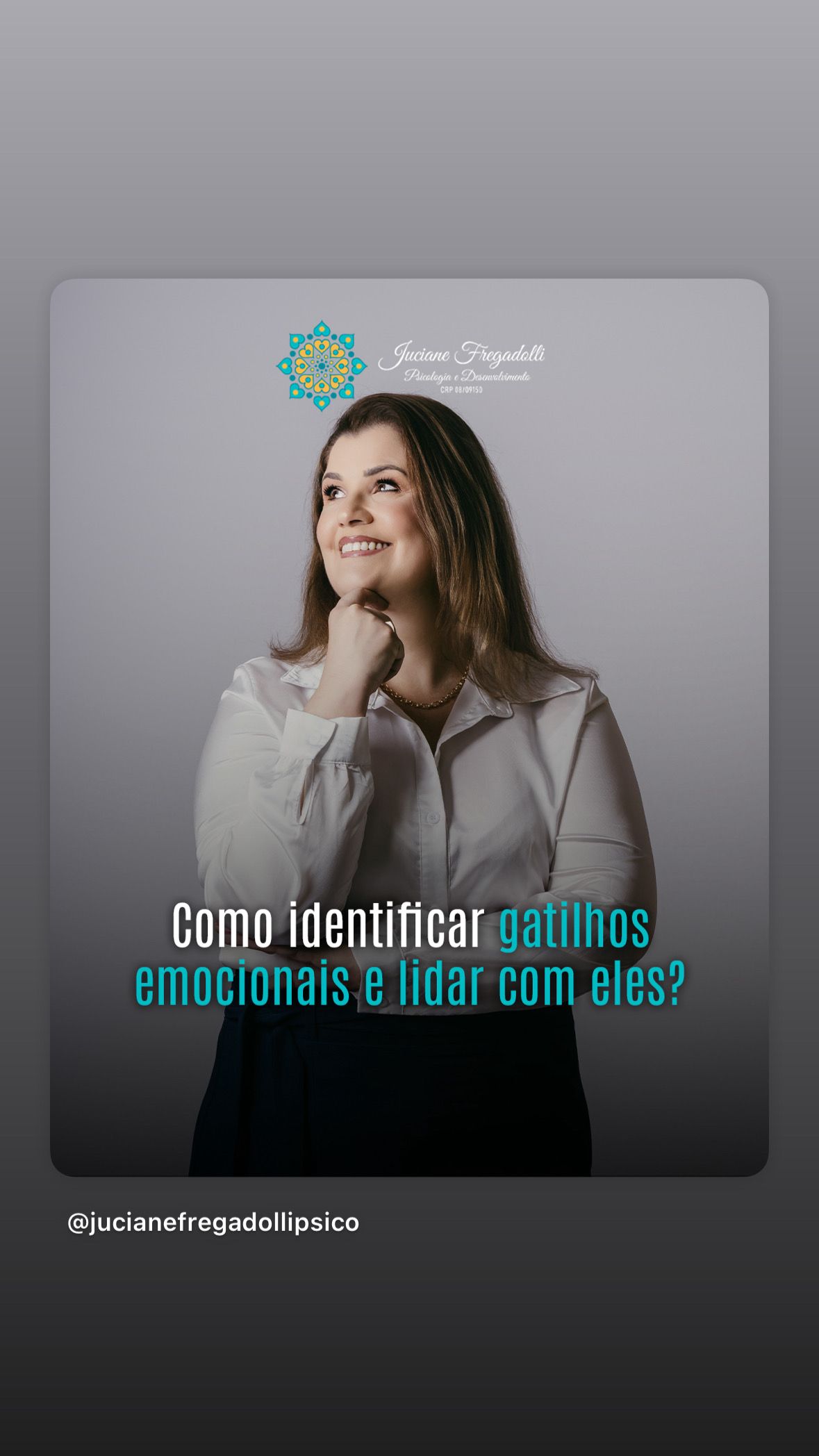 O comportamento humano e suas emoções sempre fizeram parte de minha vida, mesmo de forma empírica já o estudava, através de minhas relações e curiosidades de infância. Assim a psicologia me escolheu, em um momento de decisão, ao fazer a inscrição do vestibular, ela se fez presente. Aprofundar em suas teorias, buscar conhecimento e compreensão do ser humano e sua história, sempre foi minha meta. A psicologia clinica foi minha paixão, e a psicologia junguiana fez eu amar o que faço. Com as experiências e vivências dos atendimentos, compreender o sistema familiar foi fundamental. E assim, para compreender a psique humana, estudar e atualizar a dinâmica psíquica é meu comprometimento da vida. Ter esse olhar diferenciado dentro do empreendedorismo, vem contribuindo com o desenvolvimento profissional de muitas pessoas.